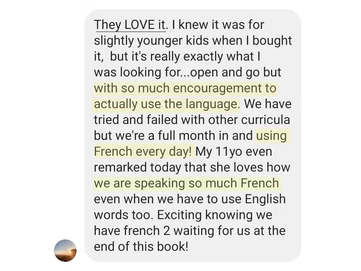 → Bottom line? If other methods didn’t work, it’s not because your child “isn’t good at languages”—it’s because those methods didn’t show them how to actually use it. This one does.