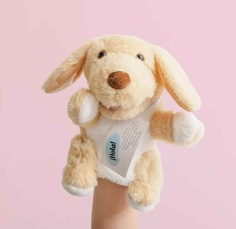 This fuzzy friend is more than a pretty face— he’s your child’s guide to speaking with courage, trying new words, and growing their voice in a whole new language.