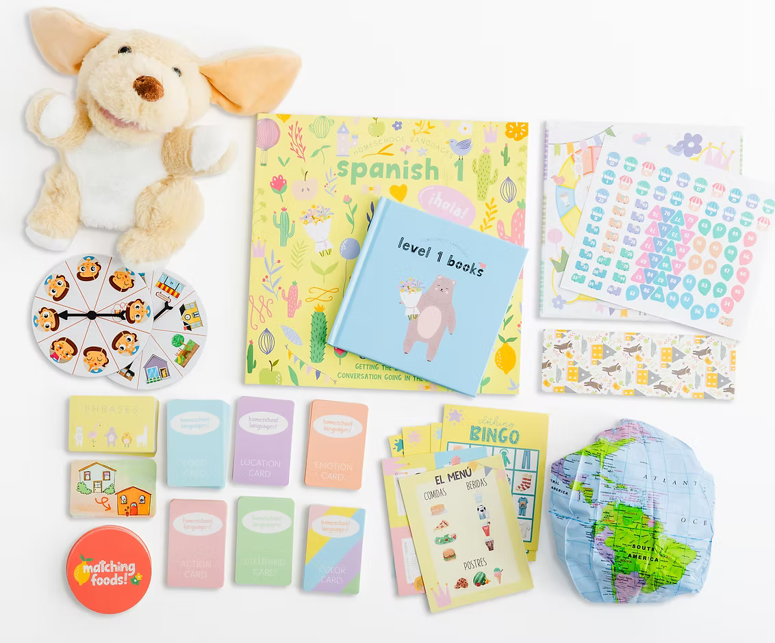 Homeschool Languages is a full course in a box designed for kids in preschool-5th
