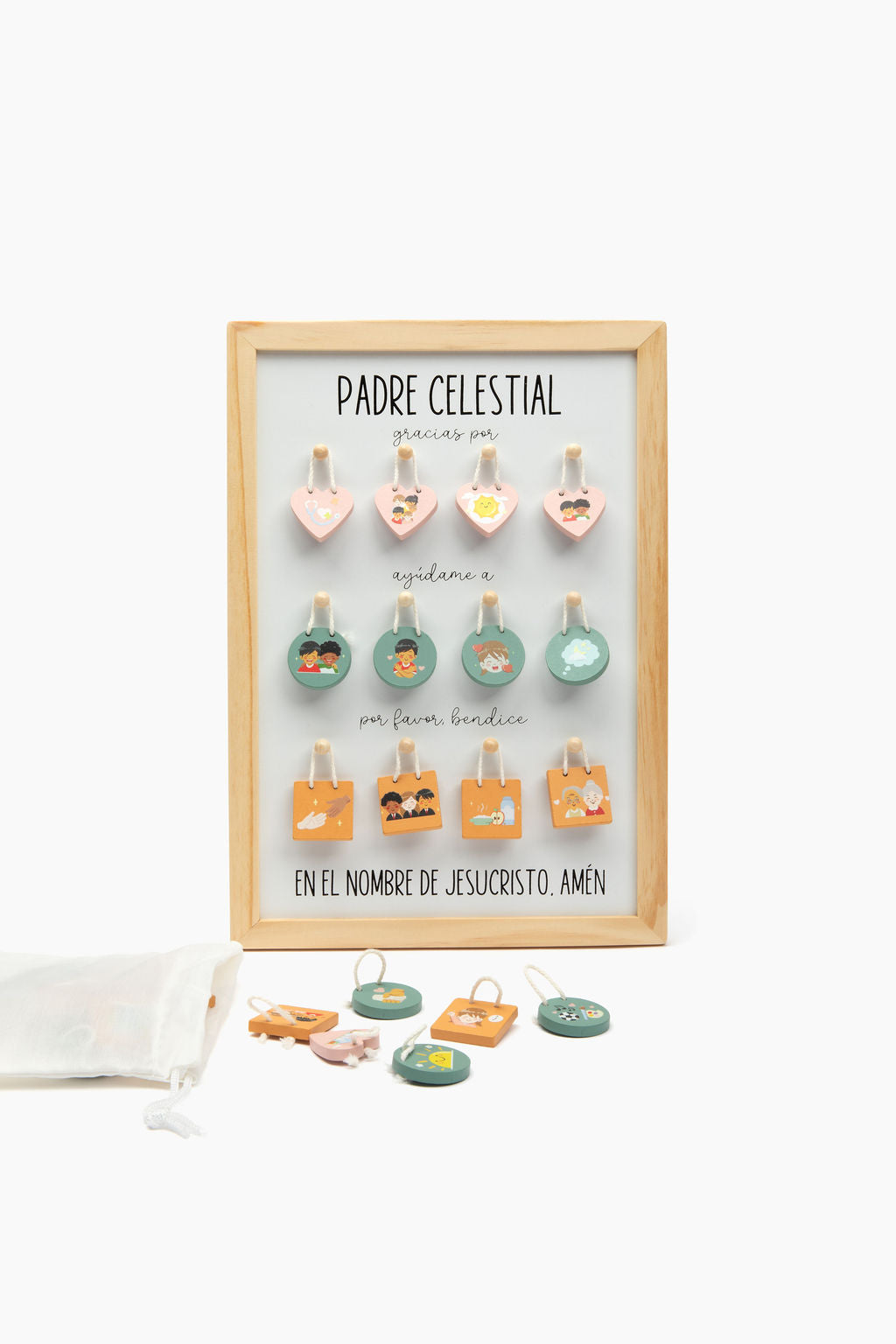🪵 Prayer Tag Board – A wooden board (or printable template) with swappable tags to help your child choose who or what to pray for—no two prayers are ever the same!