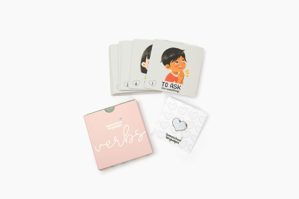 📌 Heart Lapel Pin (physical version only, for Level 2 students) – A special reward when your child masters the prayer verbs.