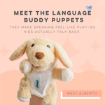 Meet your child’s new Language Buddy Puppets—the secret sauce that turns speaking practice into play.